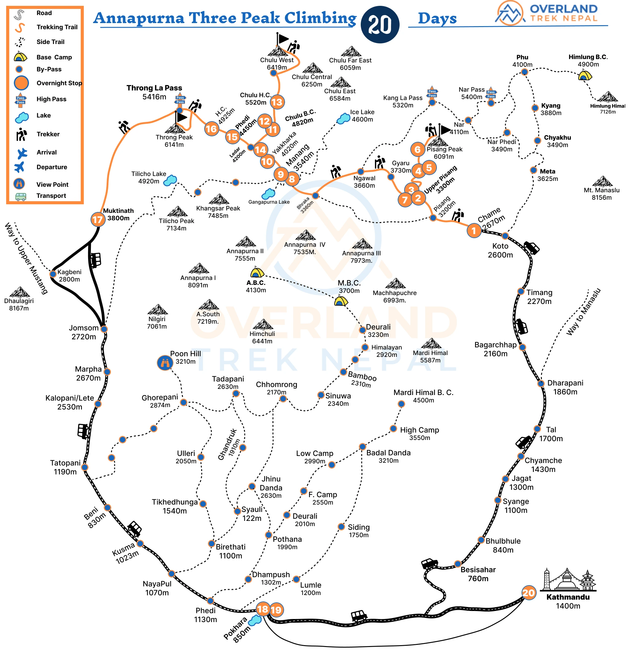 Overland Trek Nepal has crafted a 20 Day Annapurna Three Peak Climbing in Nepal, designed with a well-paced itinerary and affordable cost.