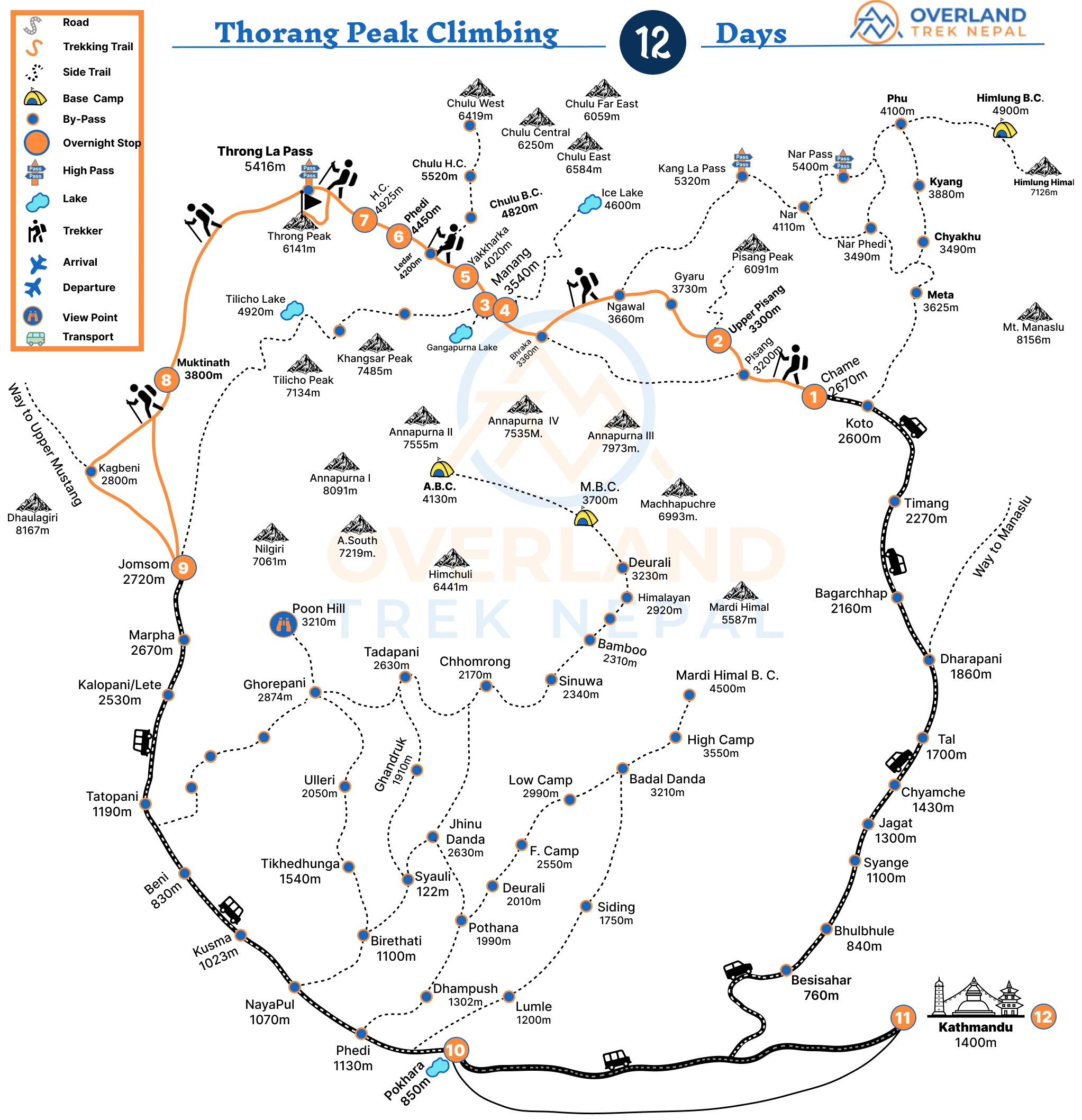 All permits are arranged by Overland Trek Nepal once you book the Thorang Peak Climbing with us.